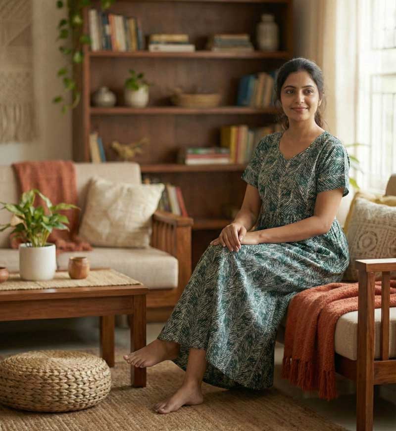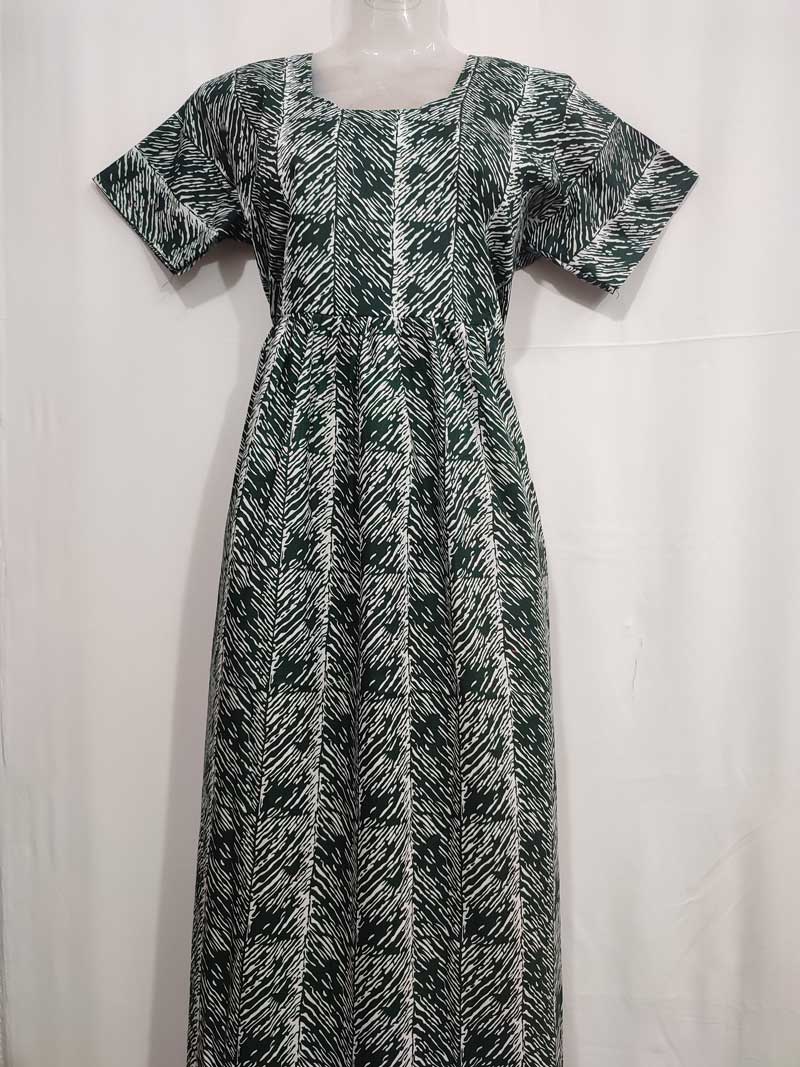 Comfortable Frock Model Cotton Nighty – 55 Inches Long – Dark Green