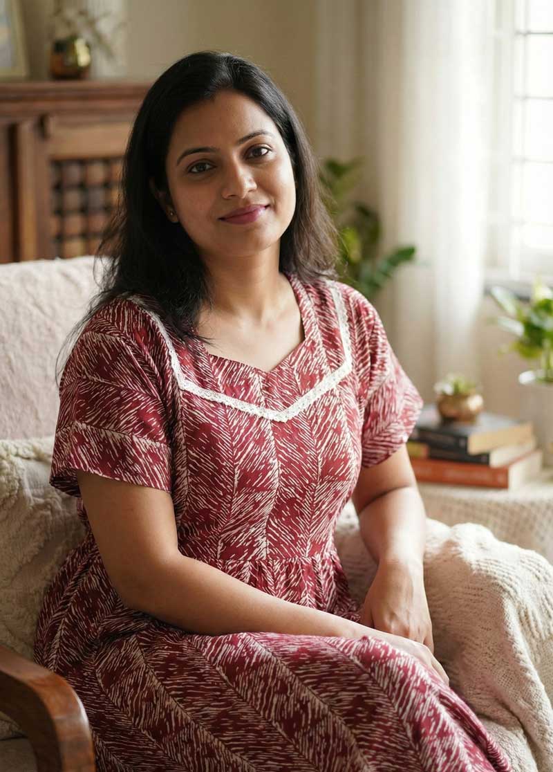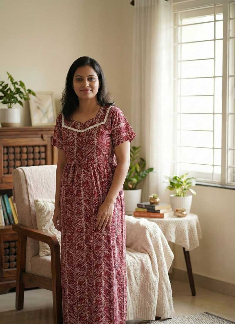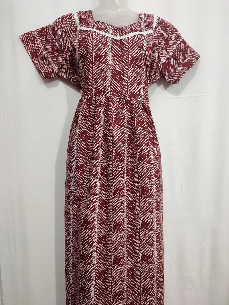 Comfortable Frock Model Cotton Nighty – 55 Inches Long – Maroon