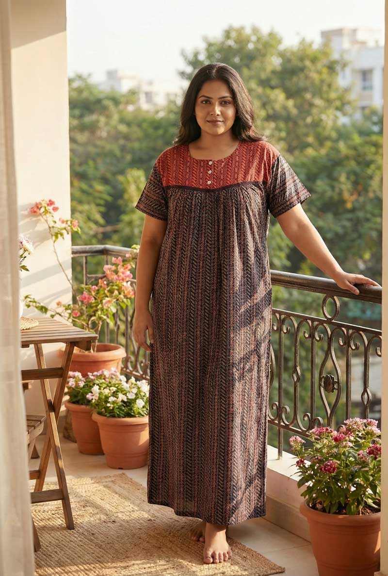 Premium Cambric Cotton Nighty With Long Sleeves – Buttons Type