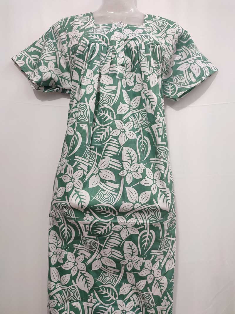 Comfortable Front Open Cotton Nighty With Buttons – 55 inches long – Green