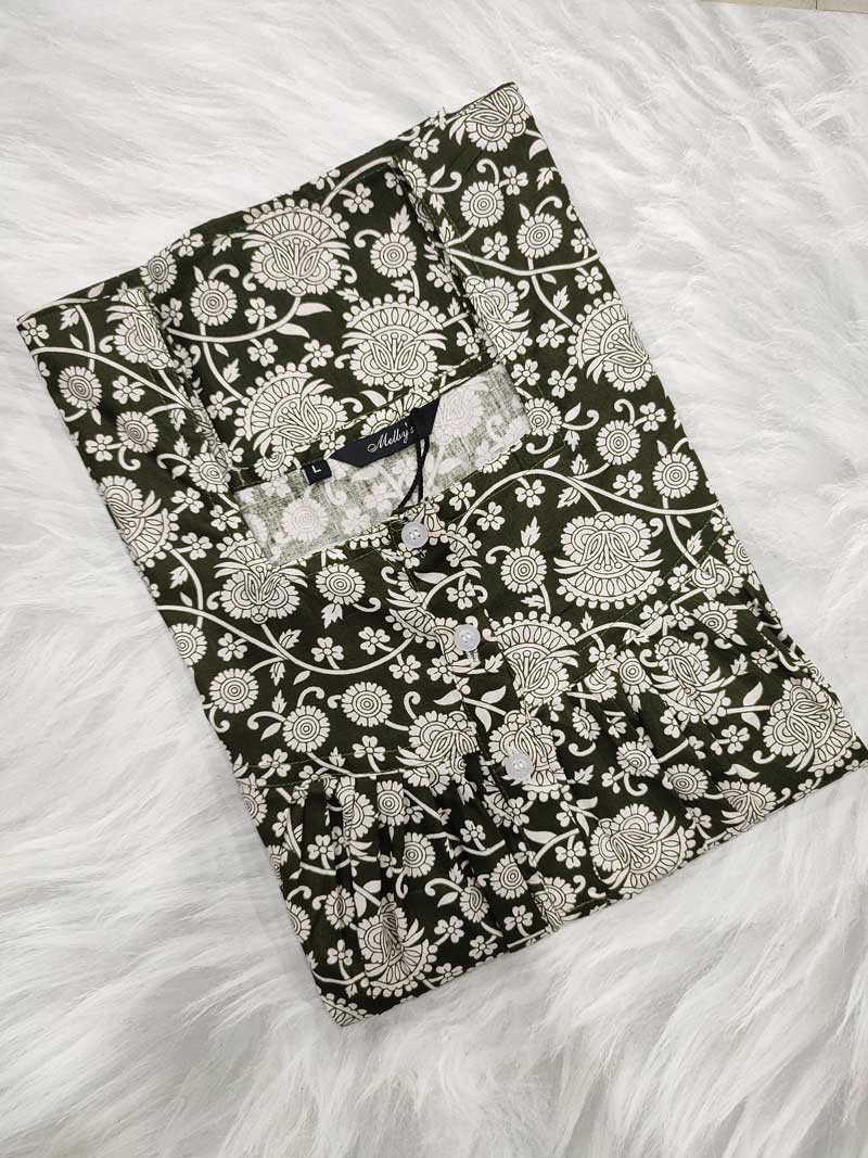 Comfortable Front Open Cotton Nighty With Buttons – 55 inches long – Green