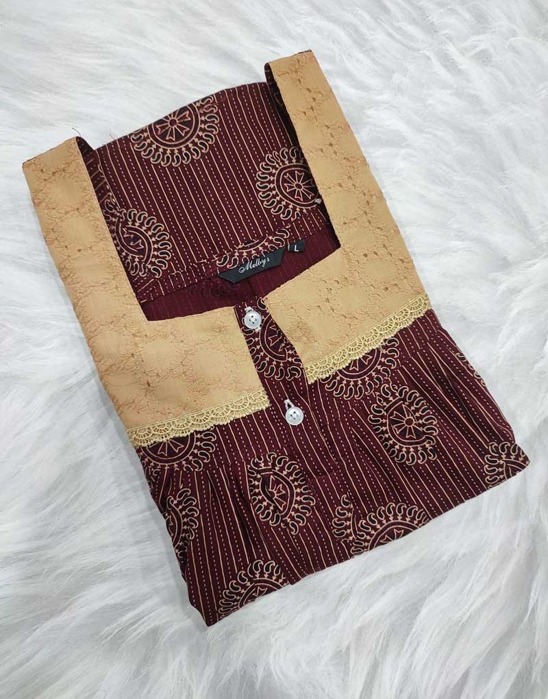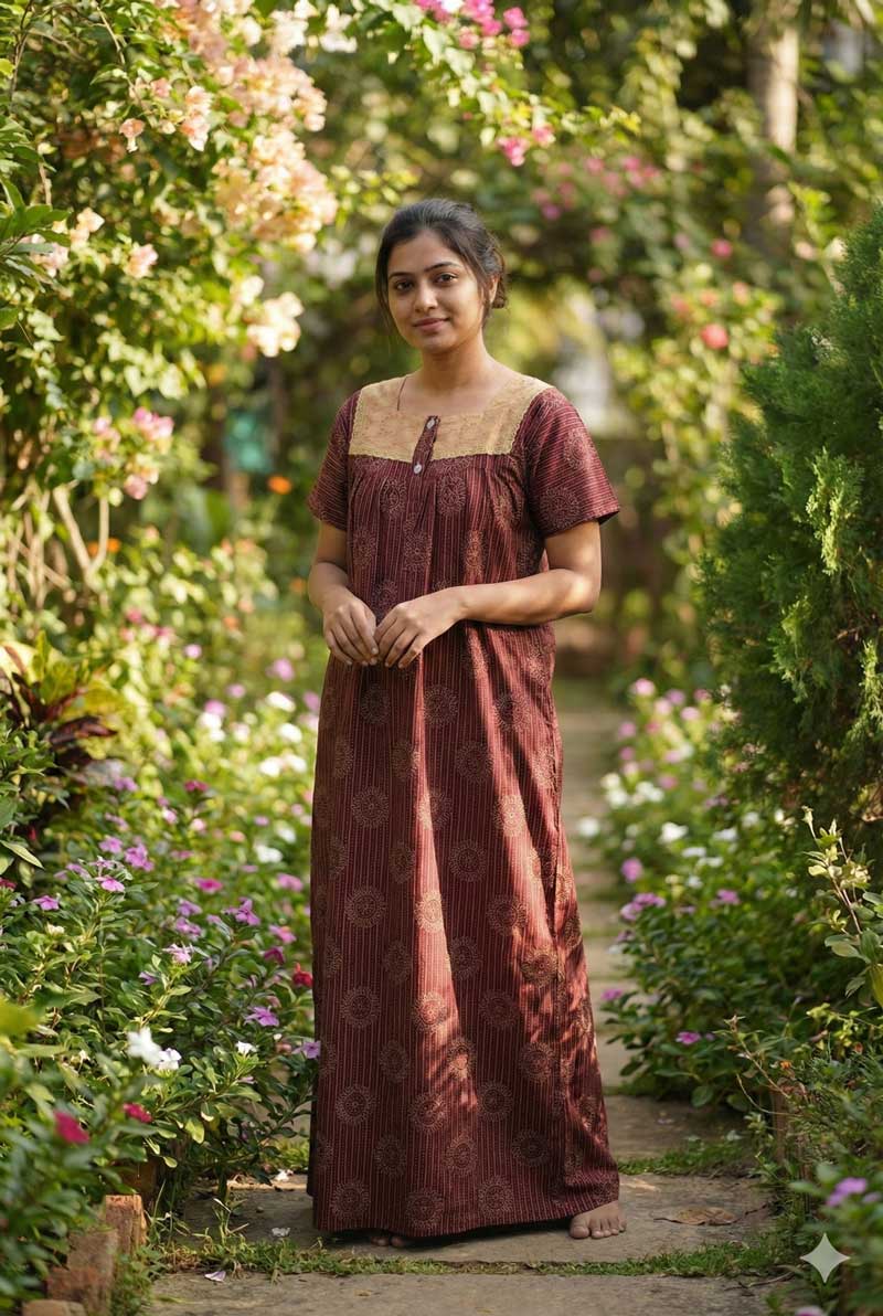 Premium Cambric Cotton Nighty With Long Sleeves – Buttons Type – Maroon