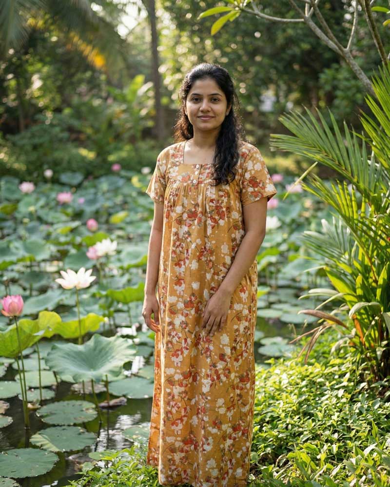 This nighty can be hand washed or a normal machine washed with cold water. Please make sure to dry the nighty in a light shade away from direct sunlight.