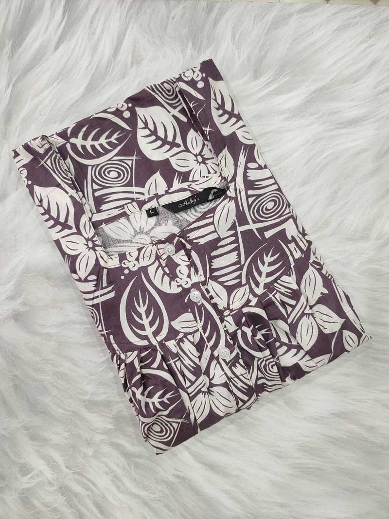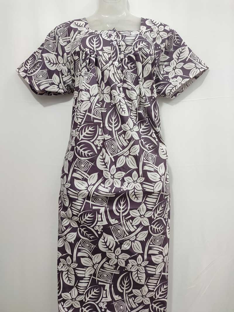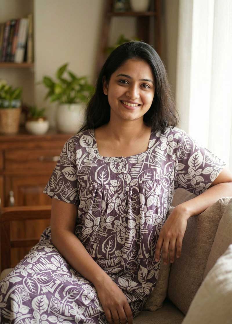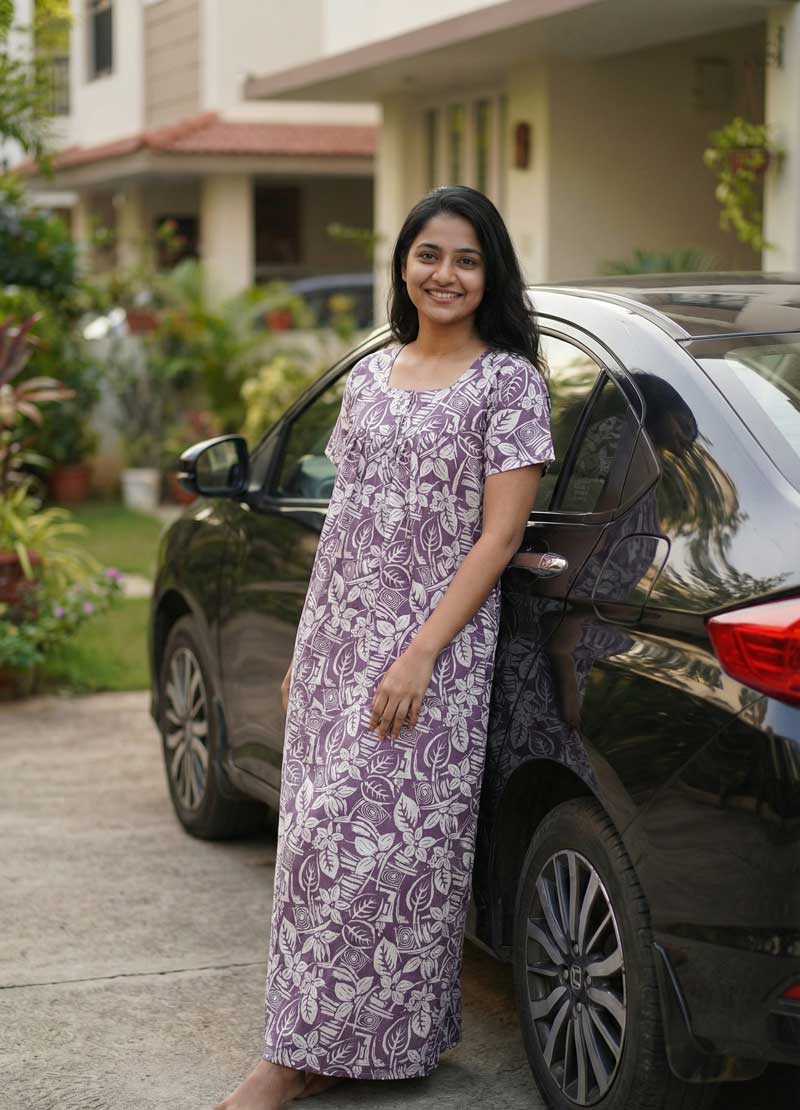 Comfortable Front Open Cotton Nighty With Buttons – 55 inches long – Purple