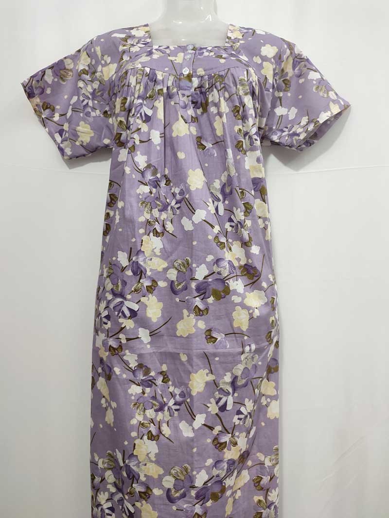 Comfortable Front Open Cotton Nighty With Buttons – 55 inches long – Purple