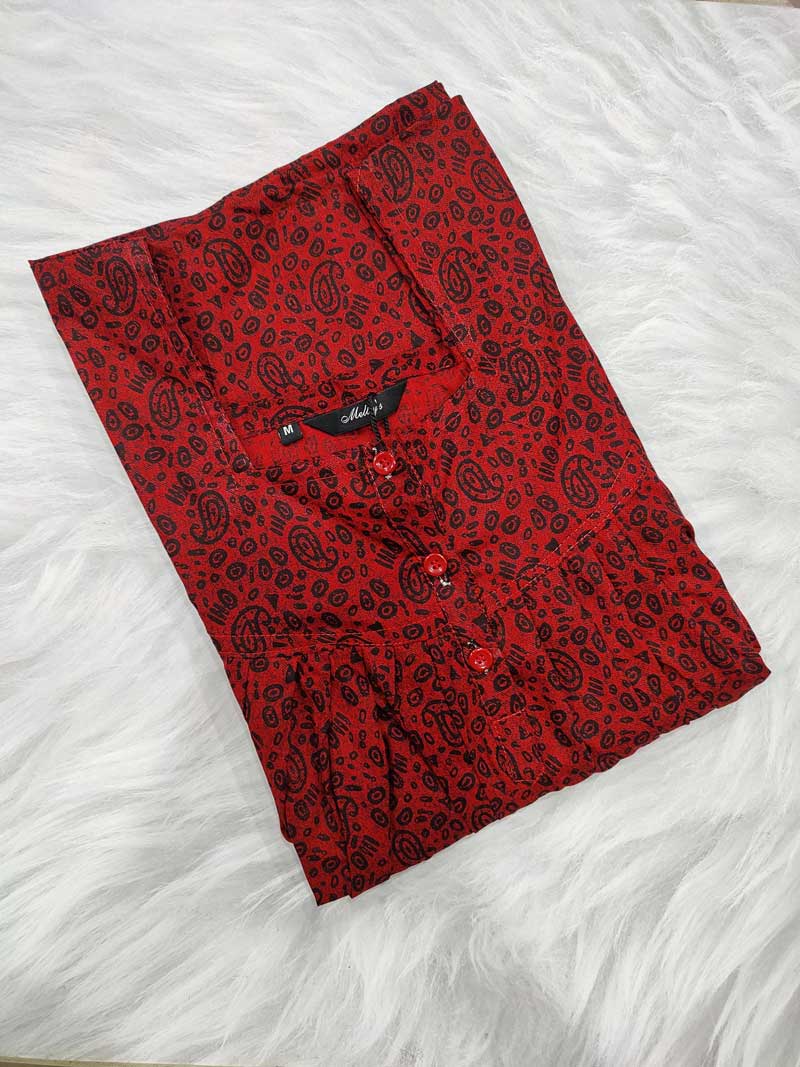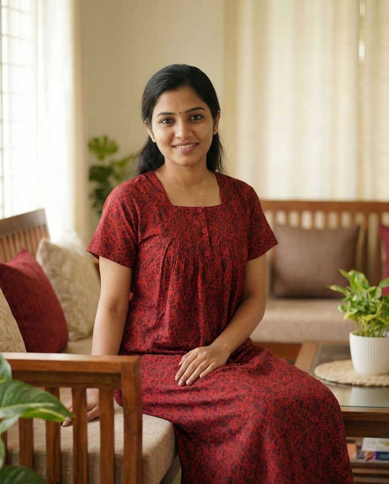 Comfortable Front Open Cotton Nighty With Buttons – 55 inches long – Red