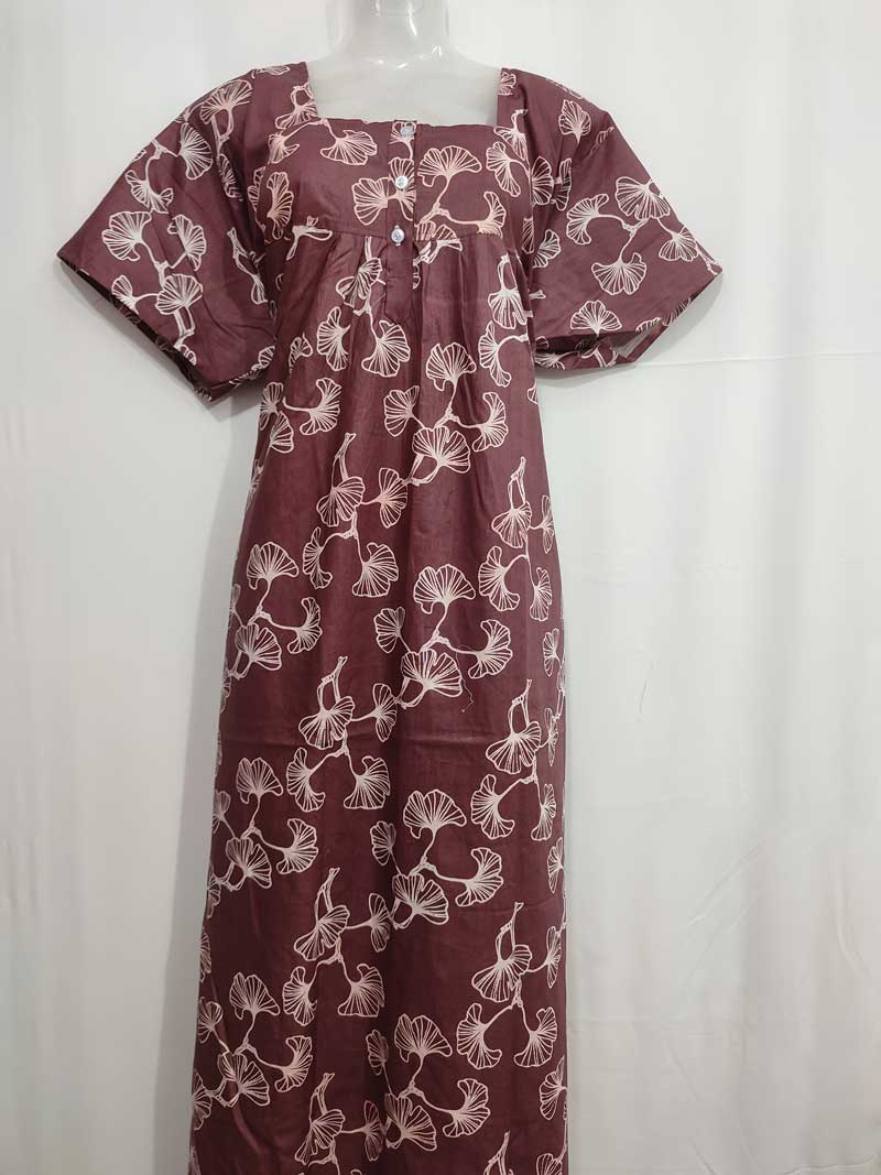 Comfortable Cambric Cotton Nighty With Buttons -55 Inches Long