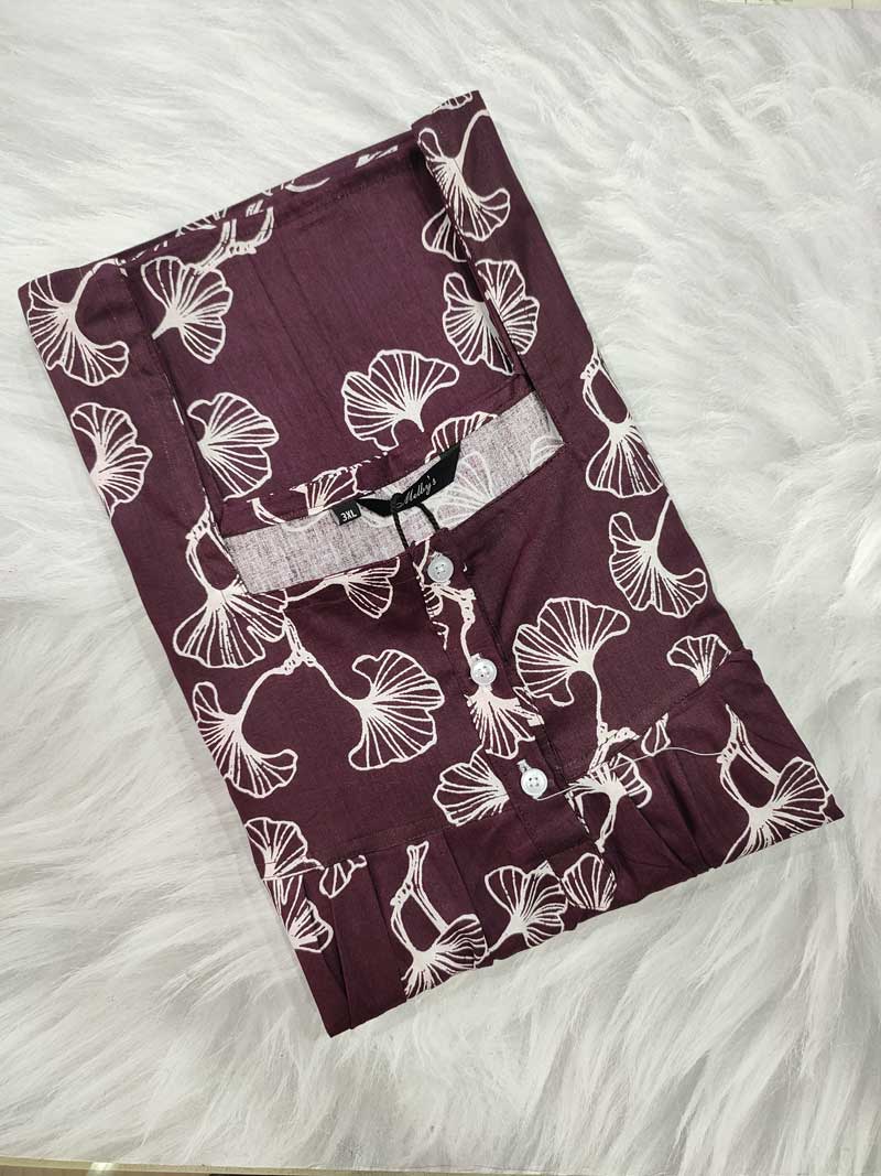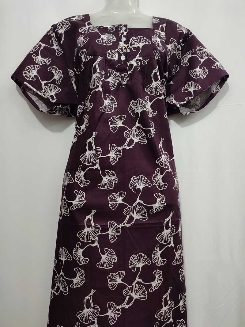 Comfortable Front Open Cotton Nighty With Buttons- 57 inches long -Brown