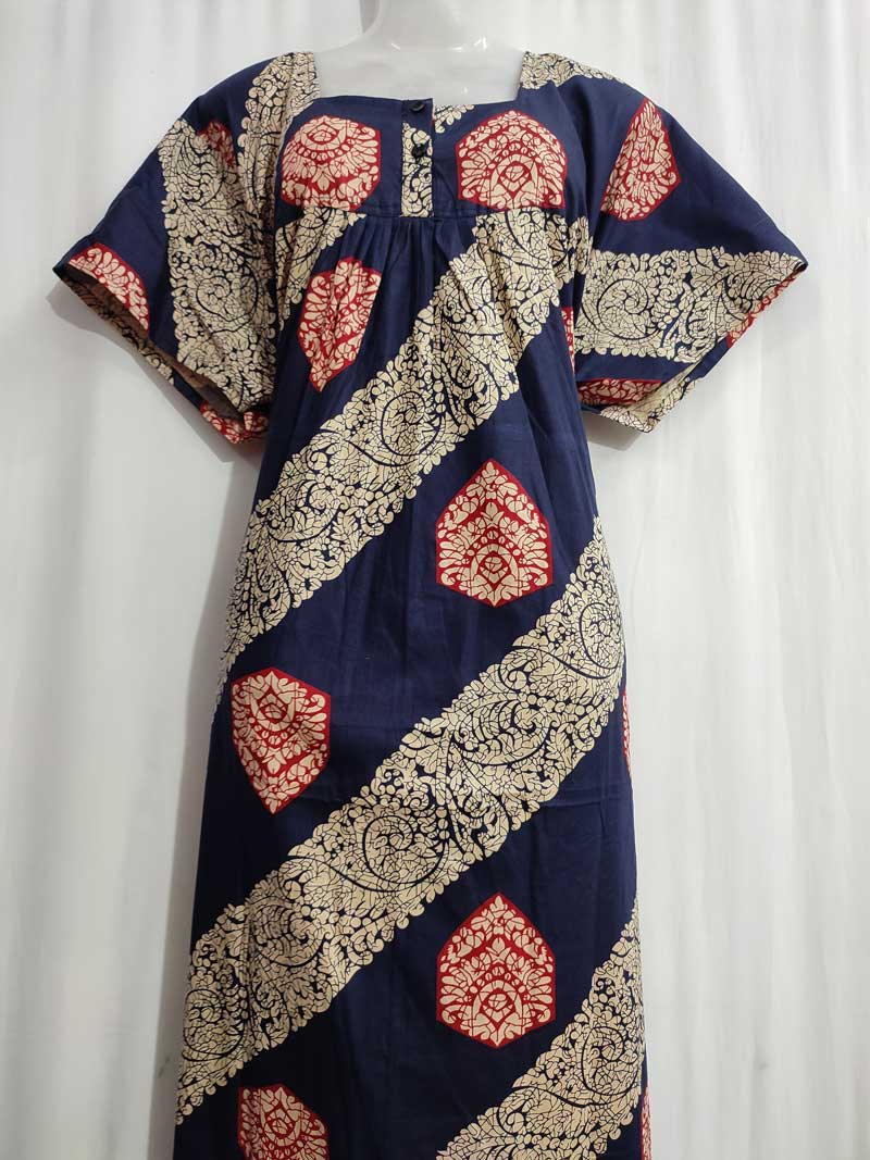 Comfortable Front Open Cotton Nighty With Buttons- 57 inches long – Dark Blue