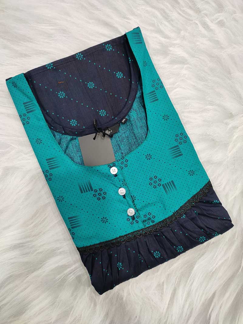 Comfortable Front Open Cotton Nighty With Buttons – 57 Inches long – Dark Green