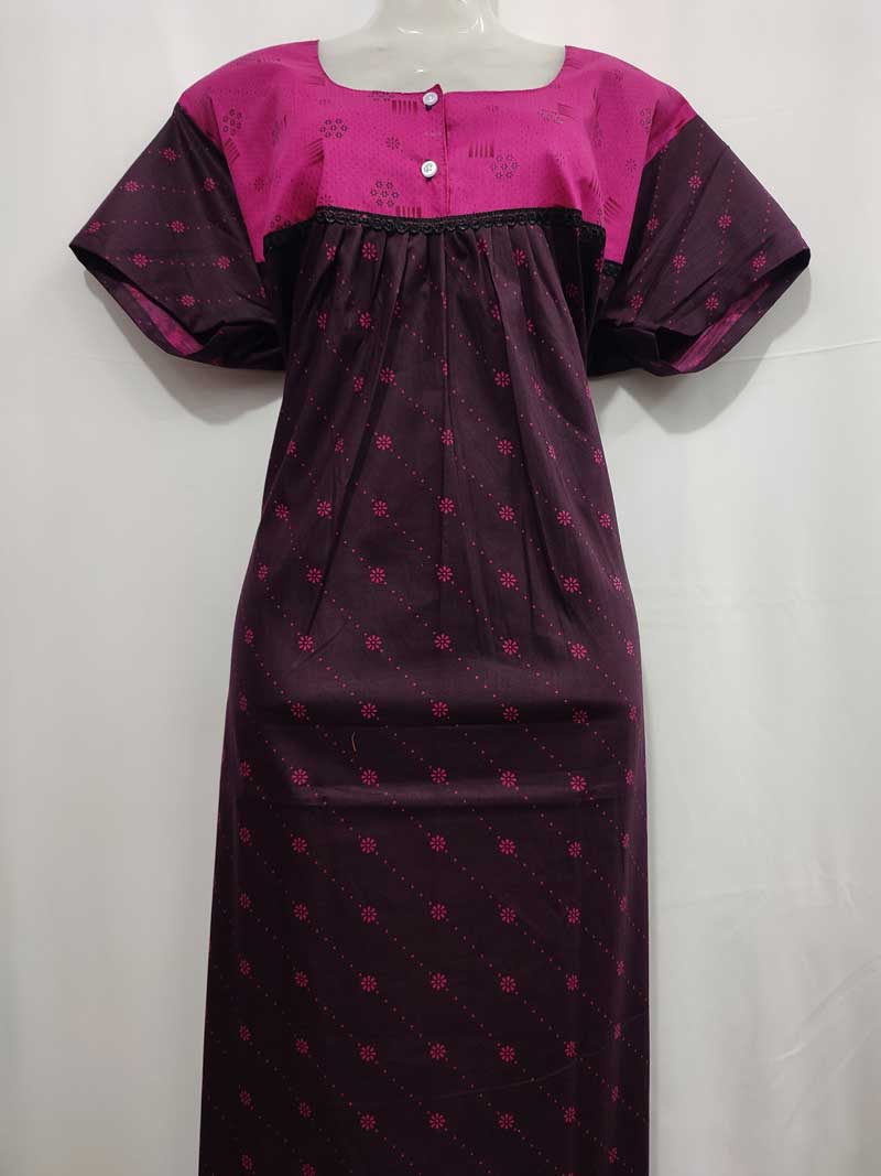 Comfortable Front Open Cotton Nighty With Buttons – 57 Inches long – Grape wine colour
