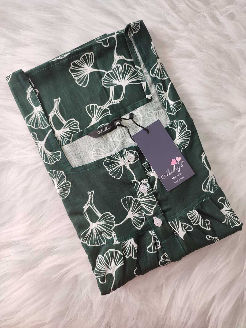 Comfortable Front Open Cotton Nighty With Buttons- 57 inches long – Green