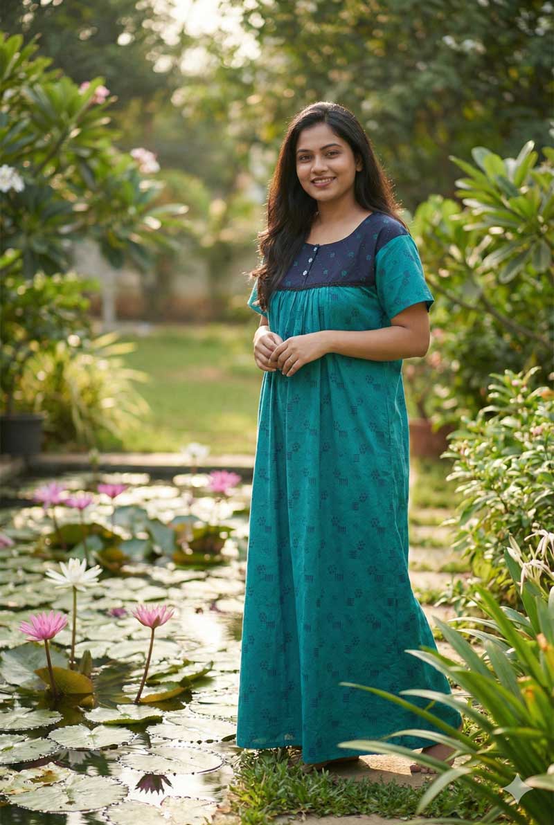 Premium Quality Cotton Kaftan nighty – 55 Inches Length – Green