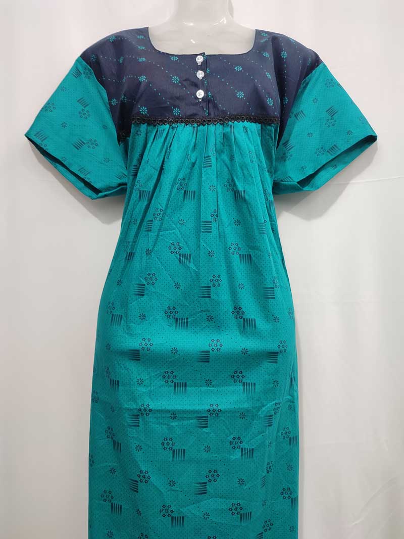 Comfortable Front Open Cotton Nighty With Buttons – 57 Inches long – Green