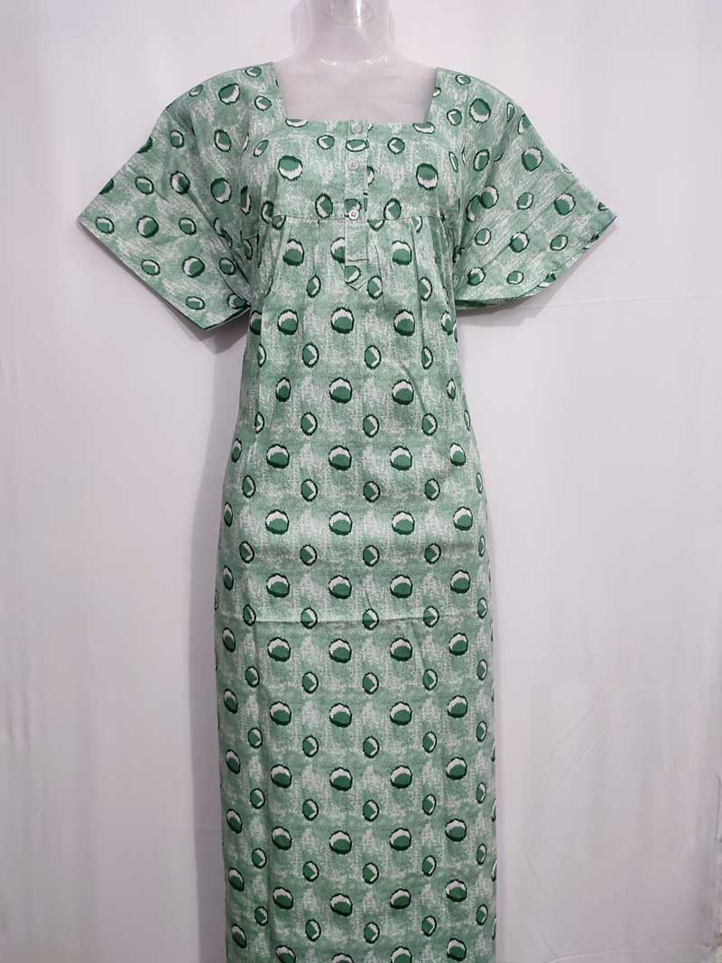 Comfortable Front Open Cotton Nighty With Buttons – 57 Inches long – Green