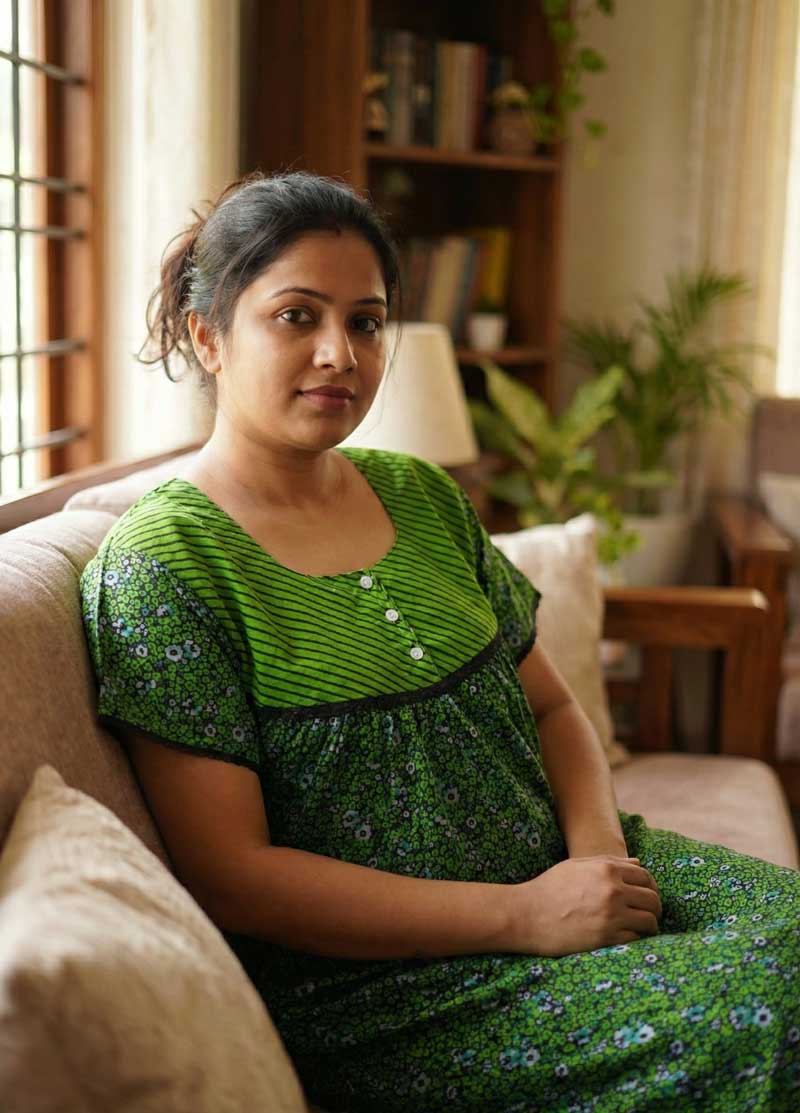 This nighty can be hand washed or a normal machine washed with cold water. Please make sure to dry the nighty in a light shade away from direct sunlight.