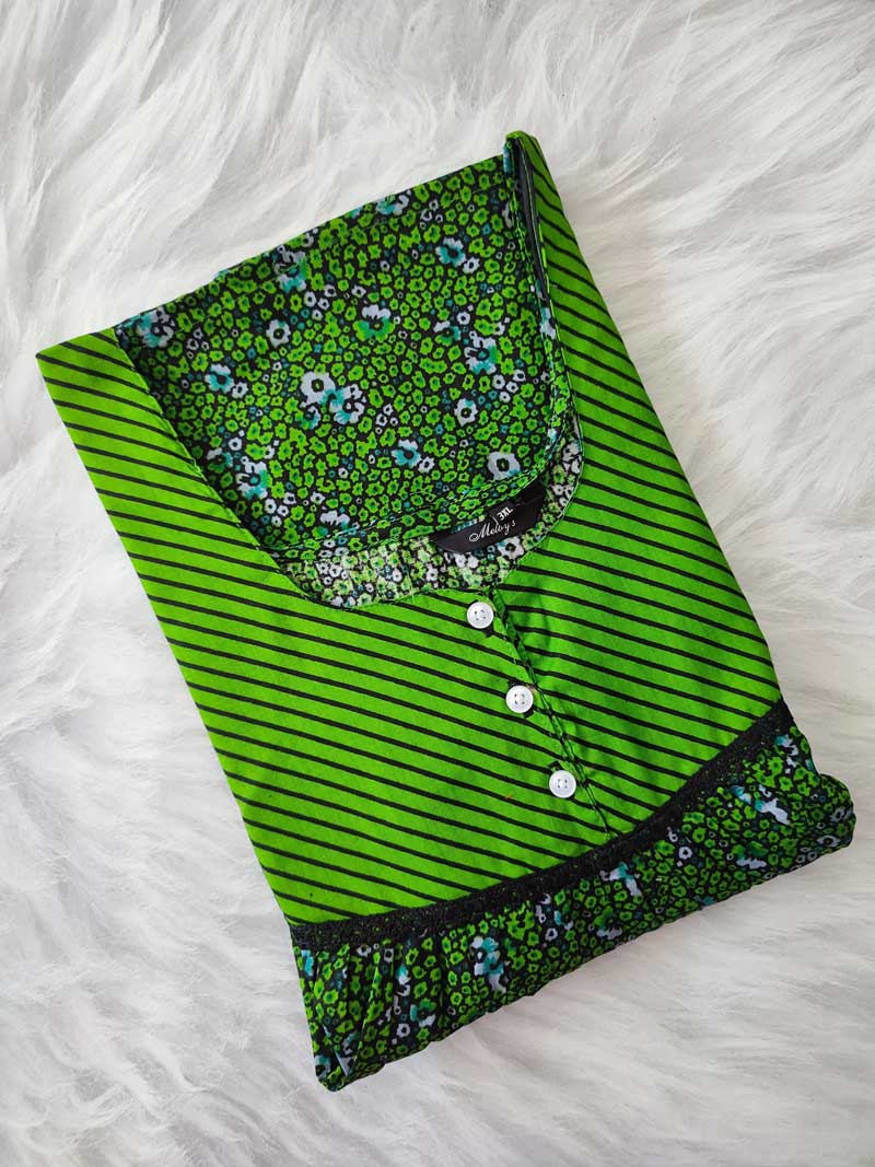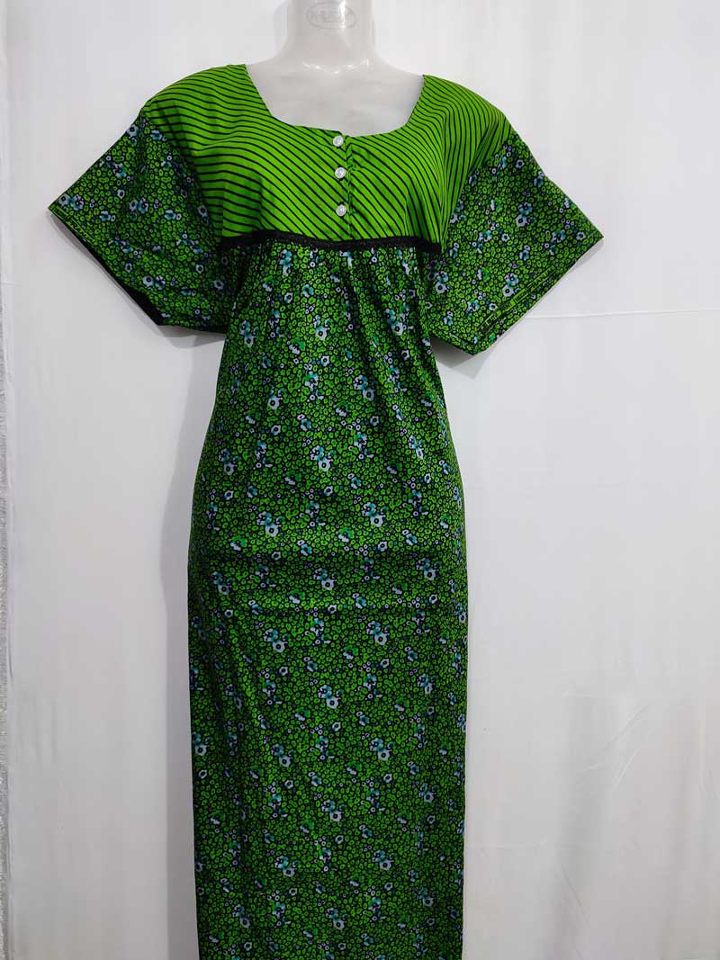 Comfortable Front Open Cotton Nighty With Buttons – 57 Inches long – Green