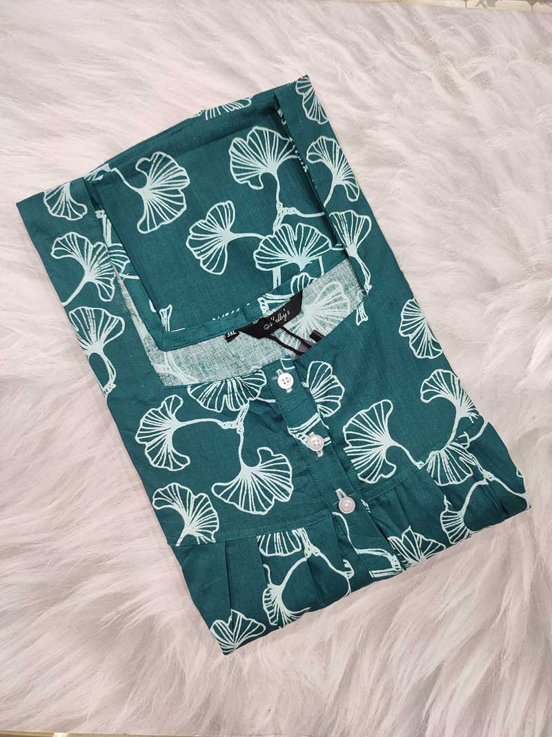 Premium Quality Cotton Kaftan nighty – 55 Inches Length – Green