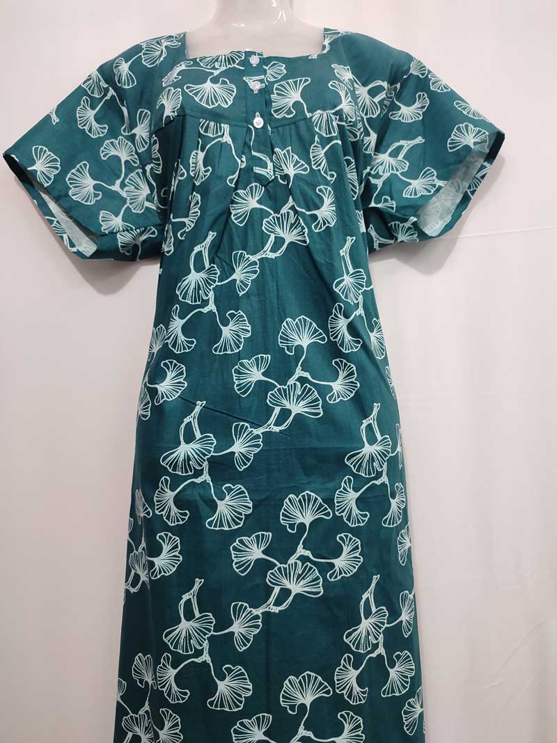 Cotton nighty- 55 inches long -Buttons type – Green