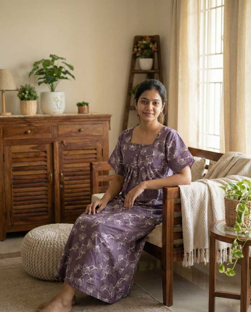 Premium Cambric Cotton Nighty With Long Sleeves – Buttons Type