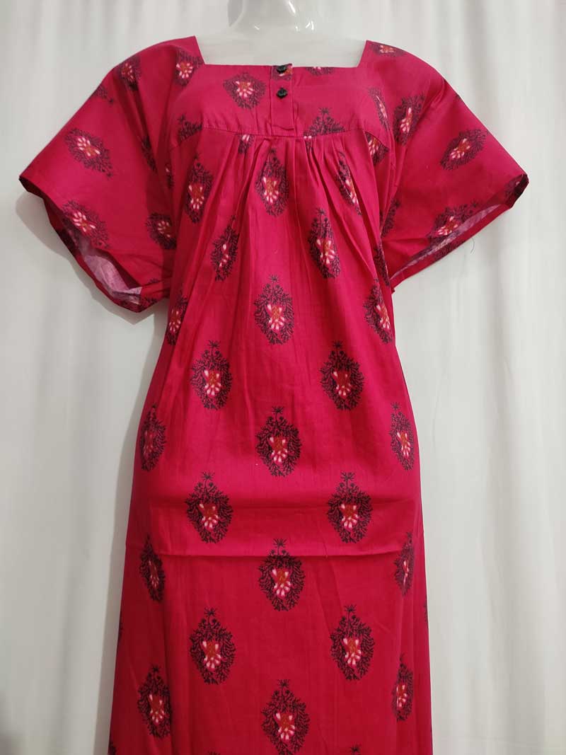 Comfortable Front Open Cotton Nighty With Buttons- 57 inches long – Magenta