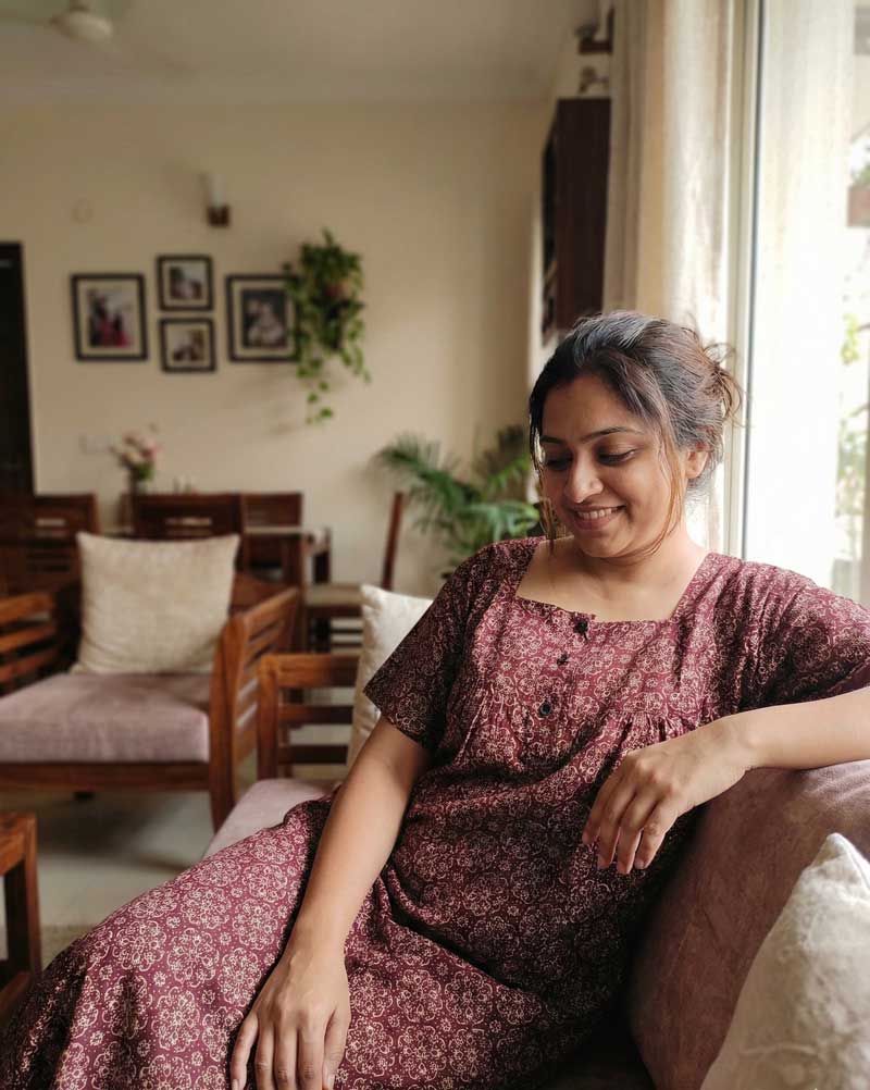 This nighty can be hand washed or a normal machine washed with cold water. Please make sure to dry the nighty in a light shade away from direct sunlight.
