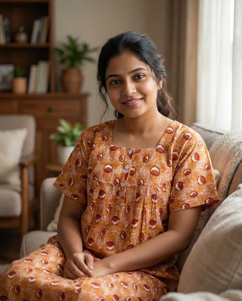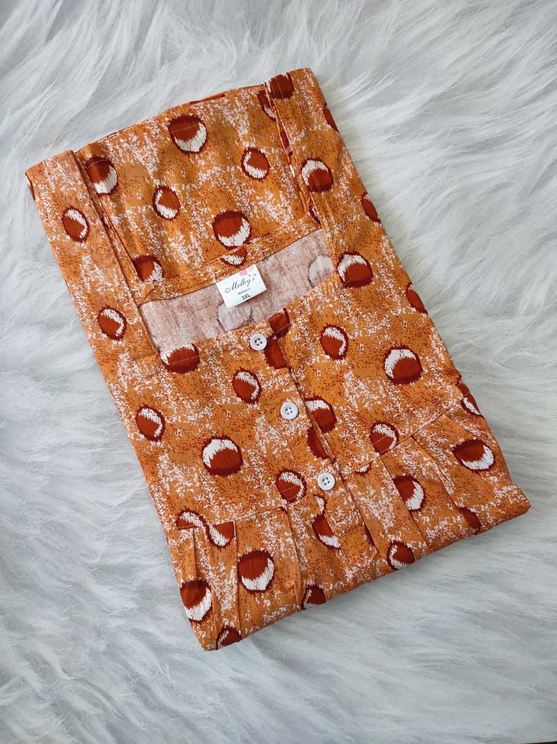 Comfortable Front Open Cotton Nighty With Buttons – 57 Inches long – Orange