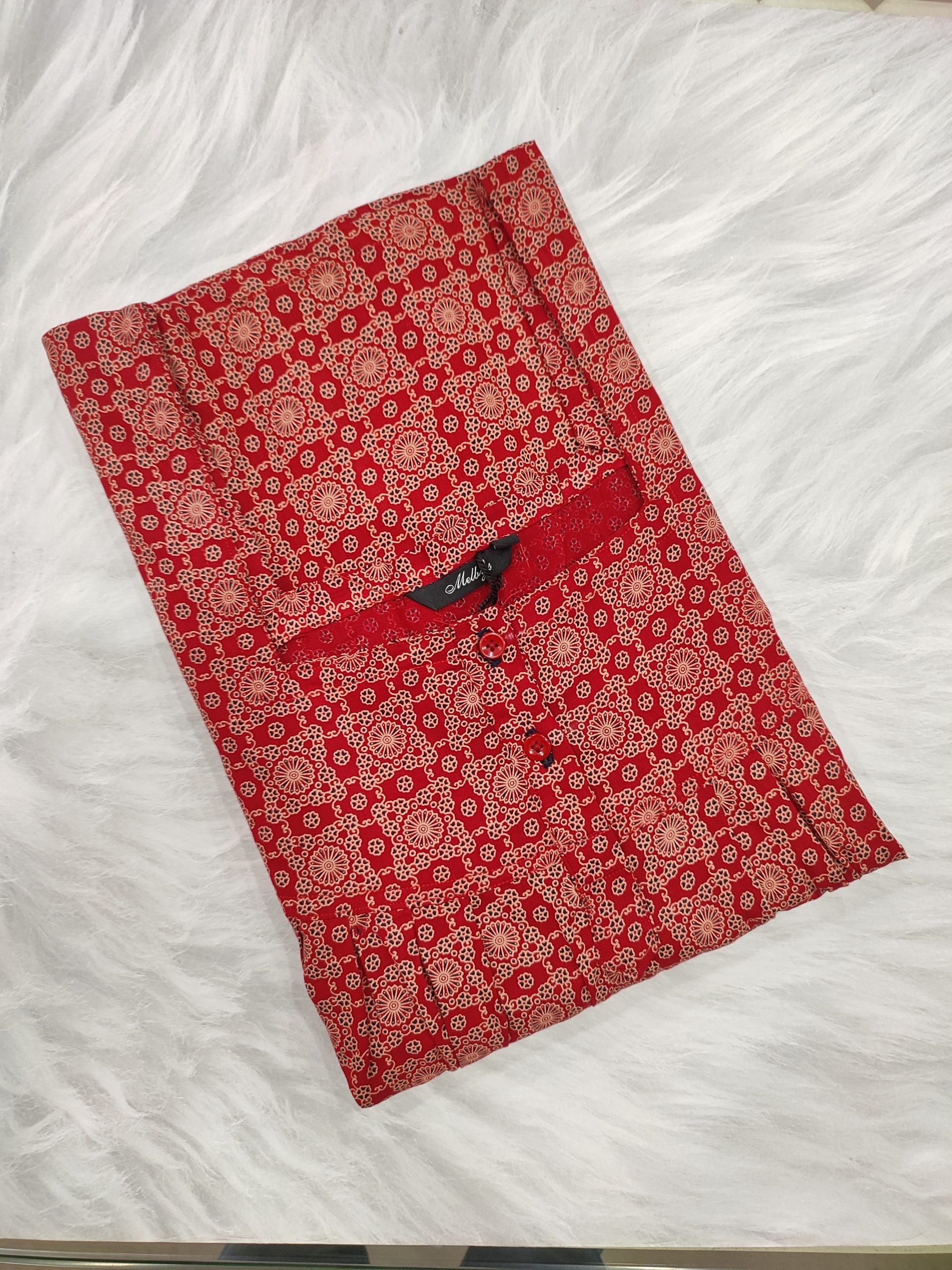 Comfortable Front Open Cotton Nighty With Buttons- 57 inches long – Red