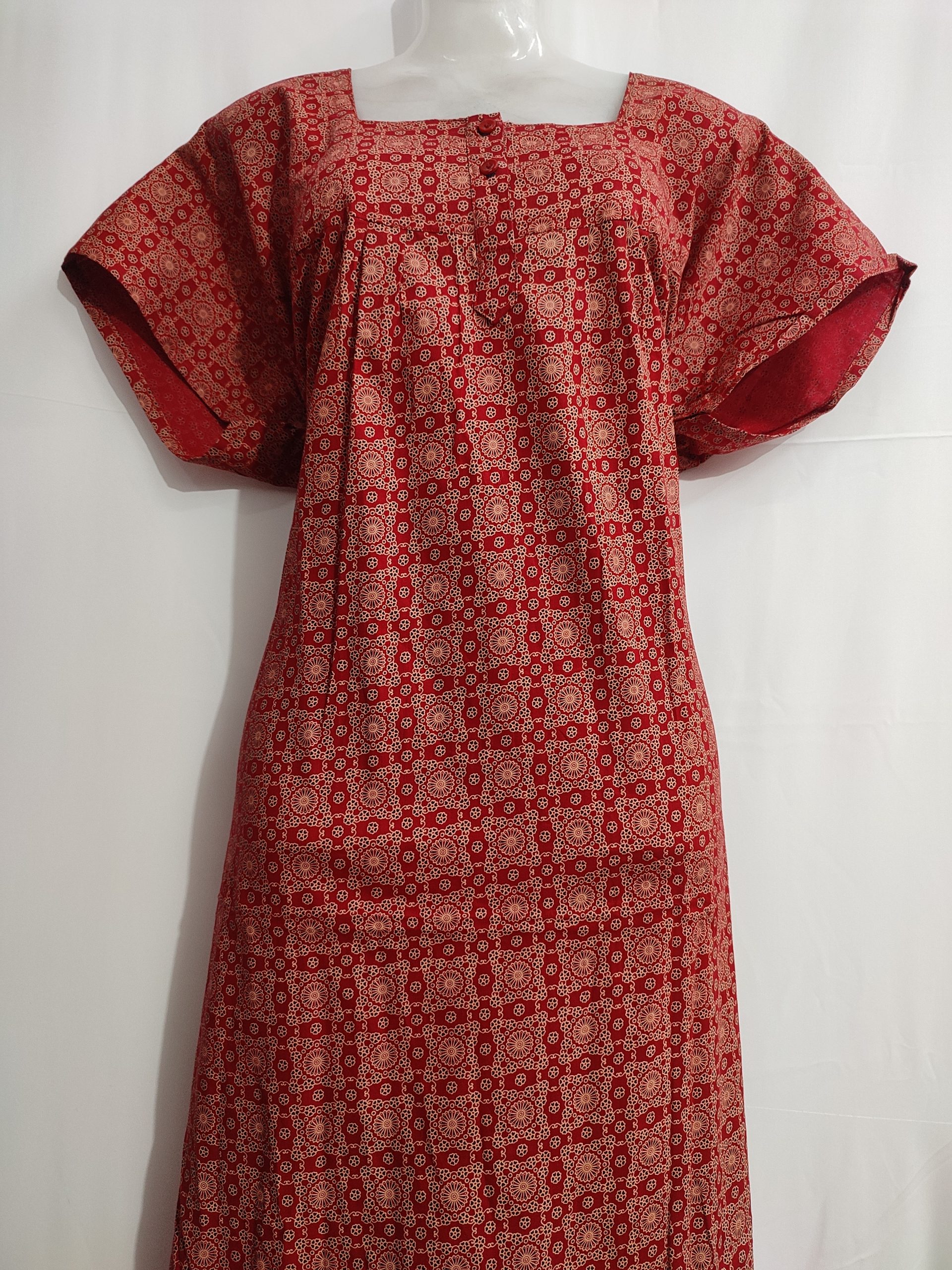 Premium Cambric Cotton Nighty With Long Sleeves – Buttons Type – Maroon