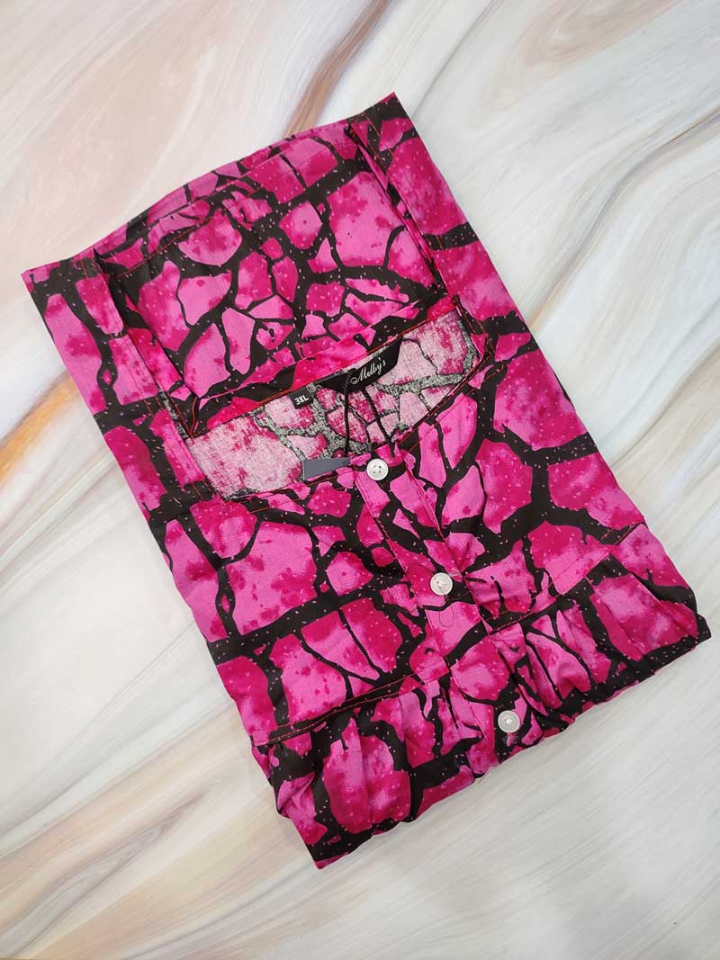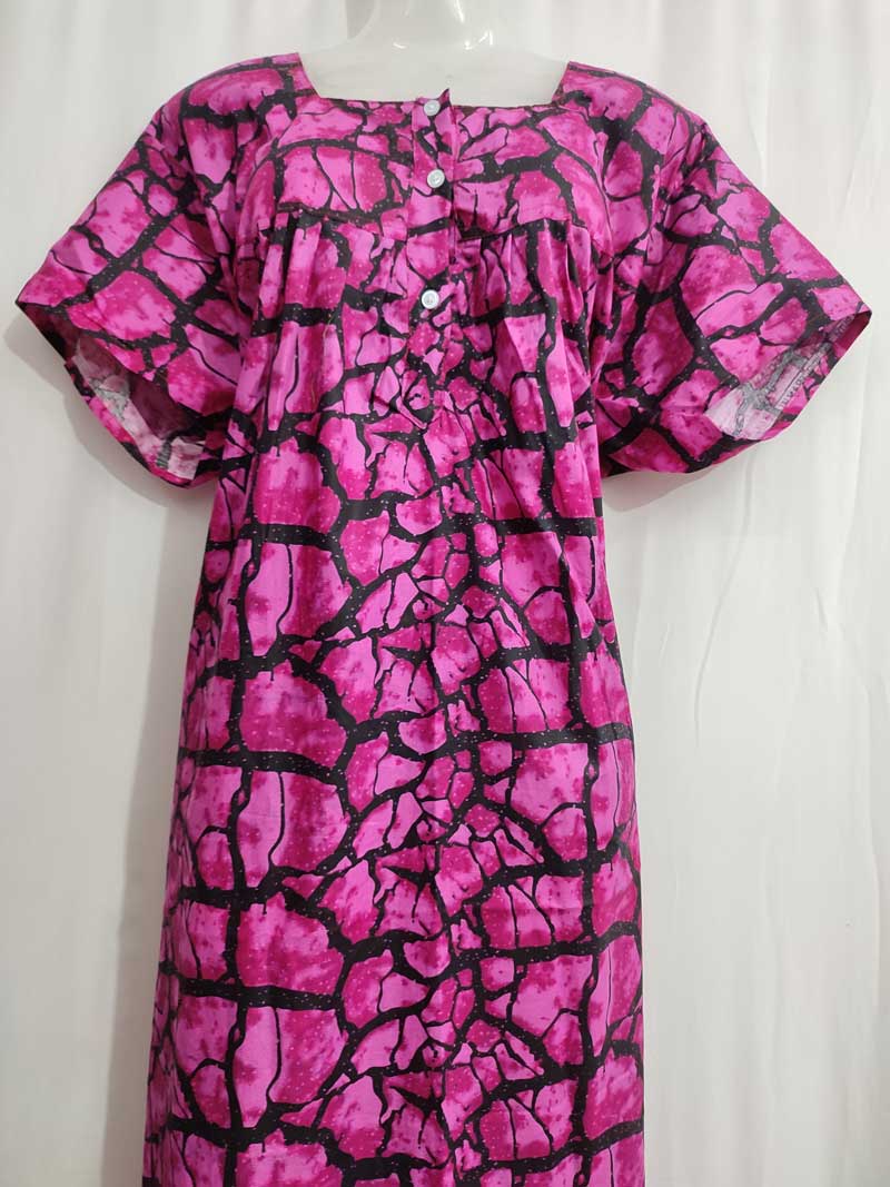 Comfortable Front Open Cotton Nighty With Buttons- 57 inches long – Rose