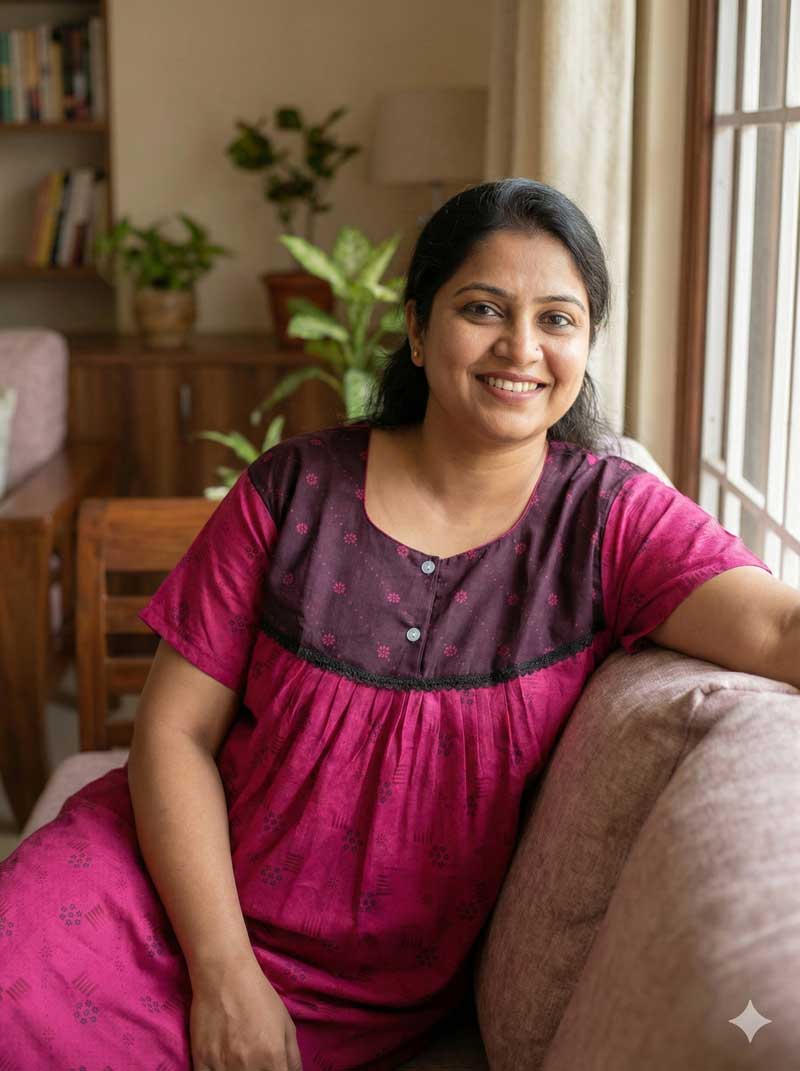 This nighty can be hand washed or a normal machine washed with cold water. Please make sure to dry the nighty in a light shade away from direct sunlight.