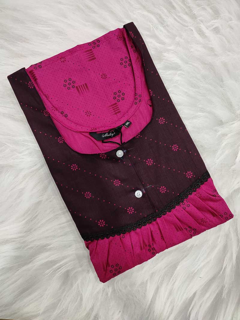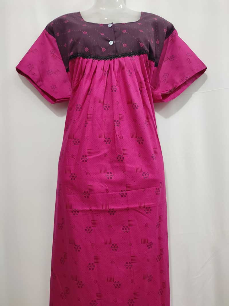 Comfortable Front Open Cotton Nighty With Buttons – 57 Inches long – Rose
