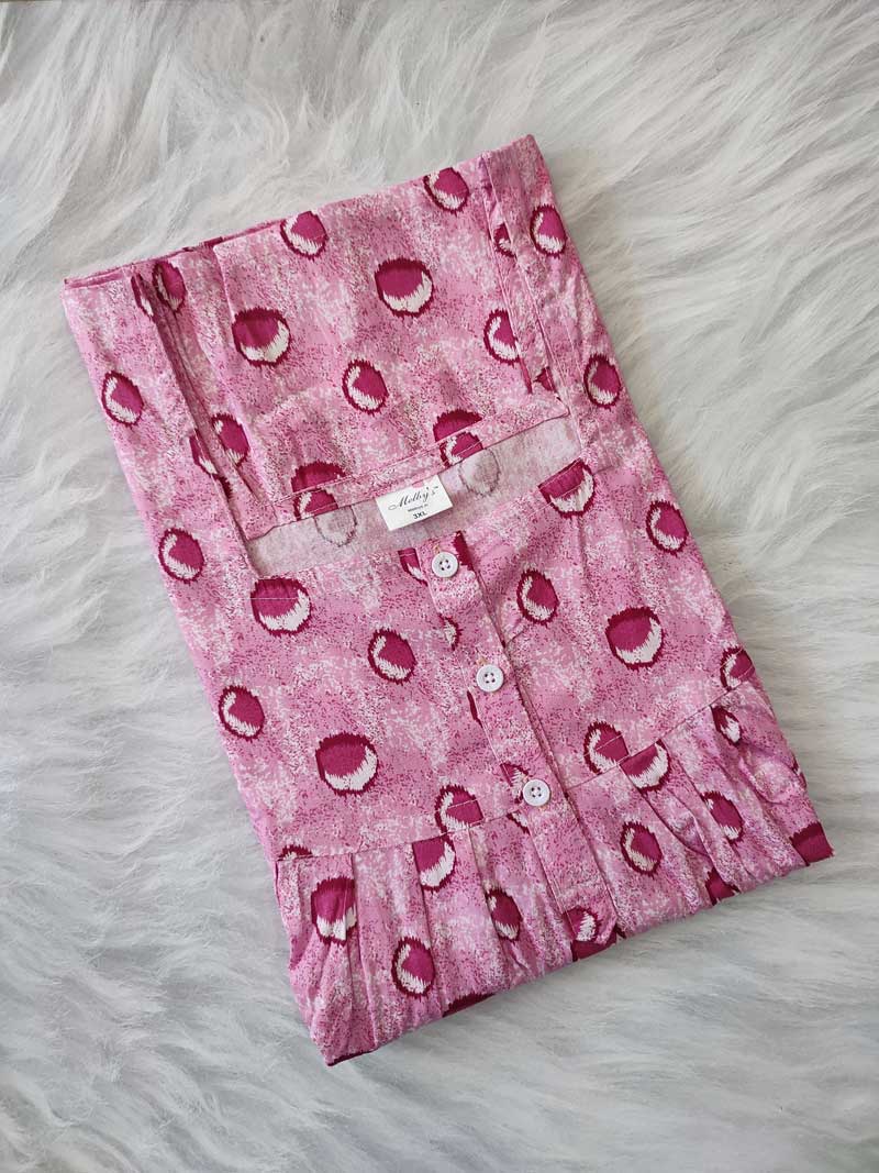 Comfortable Cotton Nighty With Buttons, 57 Inches Long – Pink