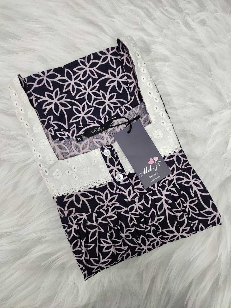 This nighty can be hand washed or a normal machine washed with cold water. Please make sure to dry the nighty in a light shade away from direct sunlight.