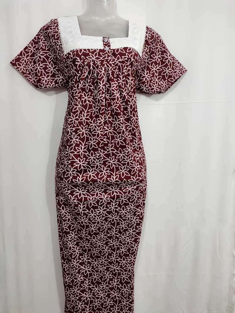 Traditional Cotton Nighty , 55 Inches Long – Brown