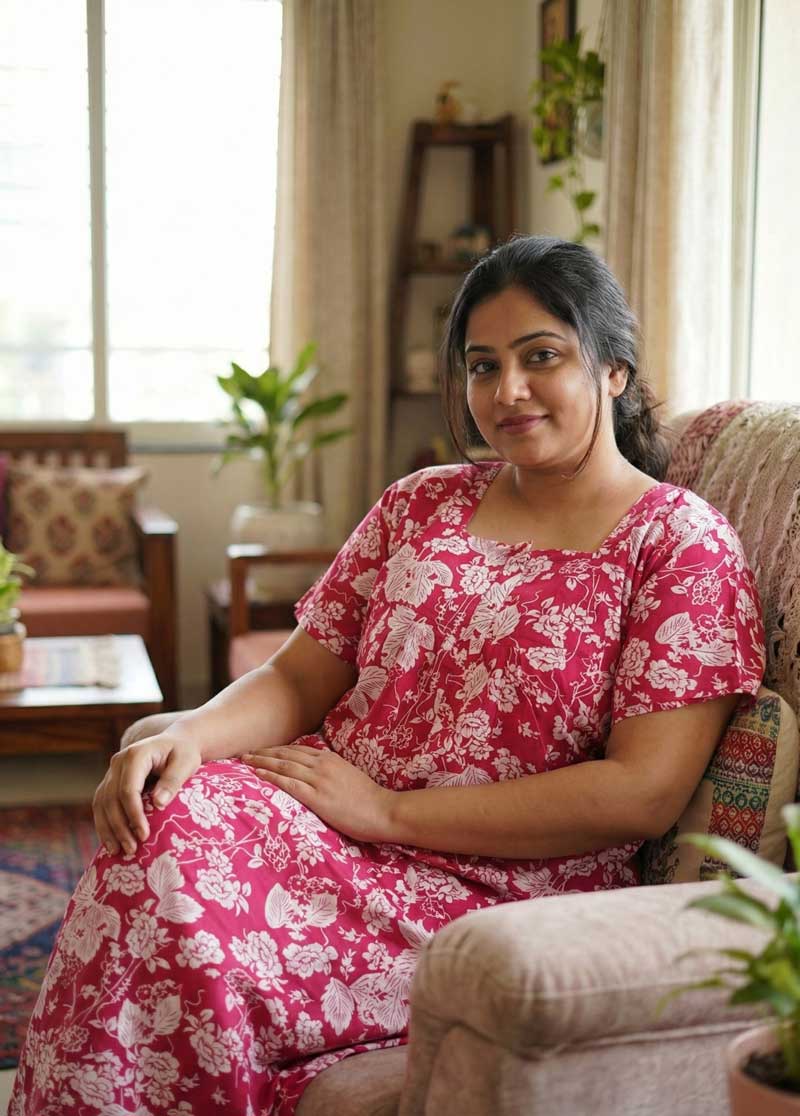 ₹459Comfortable cotton nighty With Buttons -57 inches long- Red