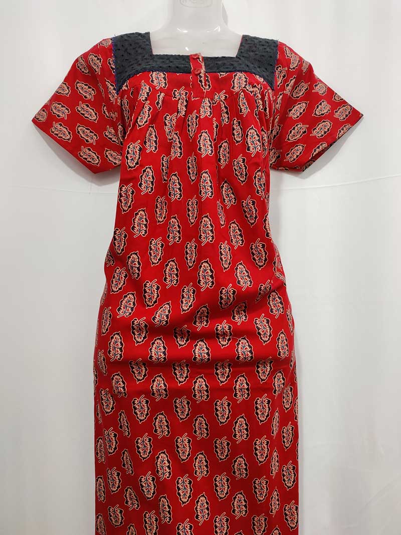 Comfortable Cotton Nighty With Buttons, 57 Inches Long – Red