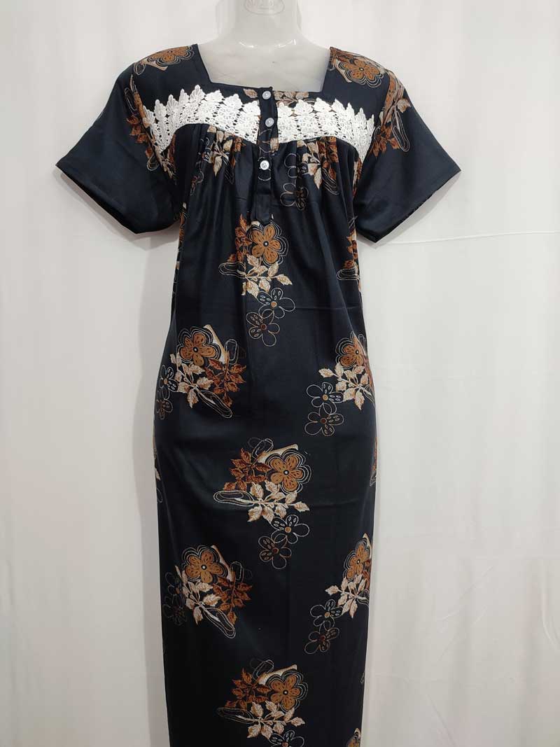 Comfortable Cambric Cotton Nighty With Buttons -55 Inches Long