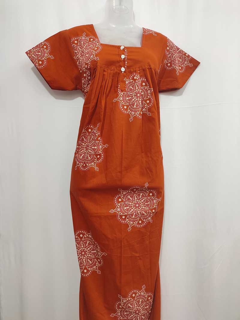 Front Open Cambric Cotton Nighty With Buttons, 55 Inches – Orange