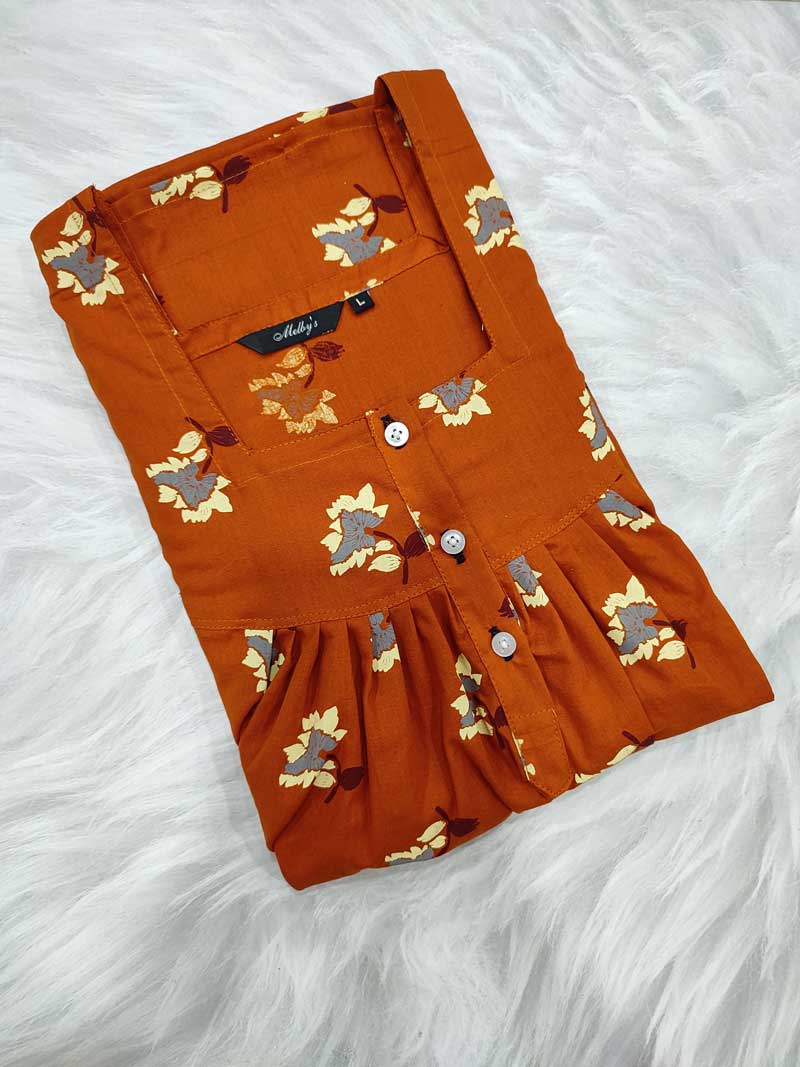 Comfortable Cotton Nighty With Buttons, 57 Inches Long – Light Orange