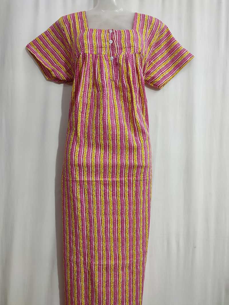 Front Open Cotton Nighty With Buttons, 55 Inches Long