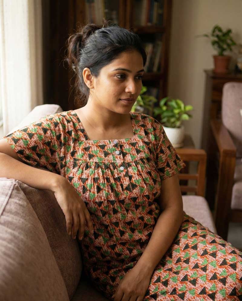 This nighty can be hand washed or a normal machine washed with cold water. Please make sure to dry the nighty in a light shade away from direct sunlight.