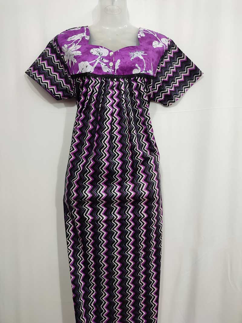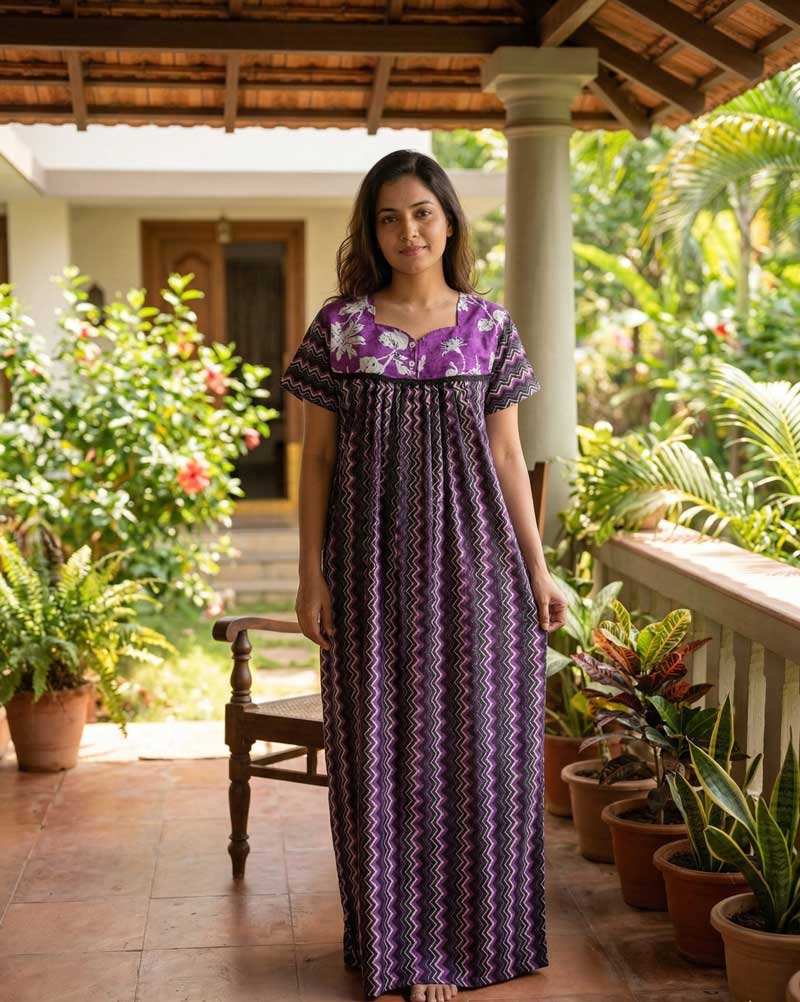 Comfortable Traditional Cotton Nighty, 57 Inches Long – Purple