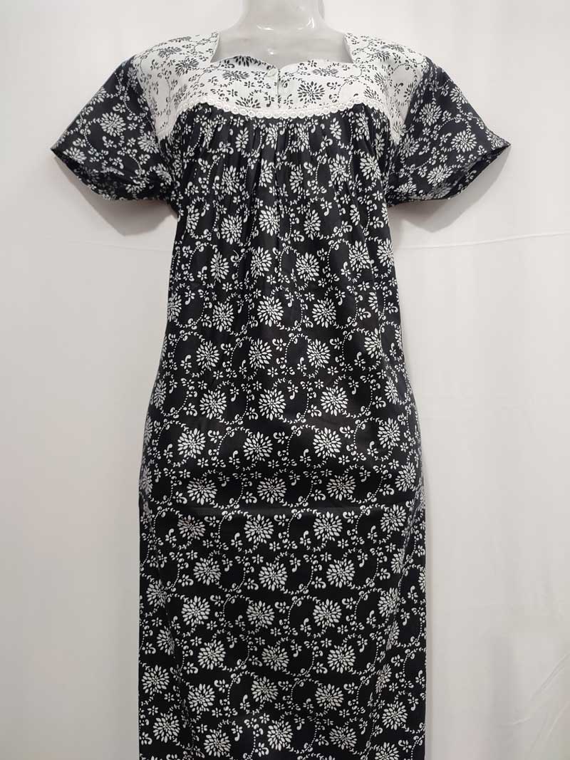 Comfortable Traditional Cotton Nighty – 55 inches long – Black