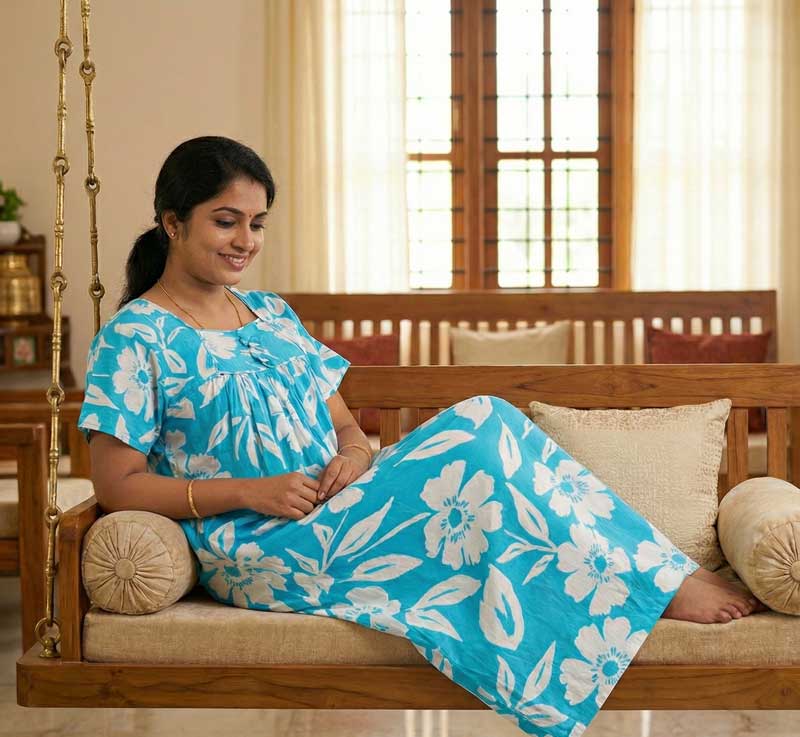 This nighty can be hand washed or a normal machine washed with cold water. Please make sure to dry the nighty in a light shade away from direct sunlight.
