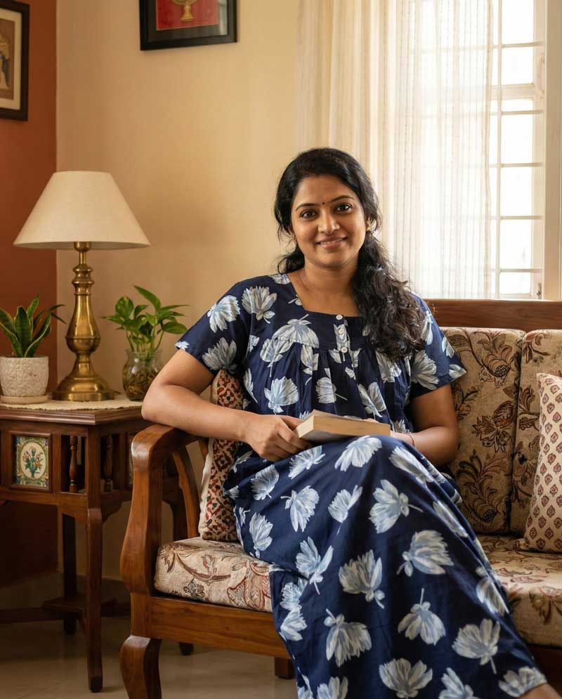 This nighty can be hand washed or a normal machine washed with cold water. Please make sure to dry the nighty in a light shade away from direct sunlight.
