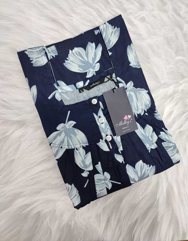 Front Open Cotton Nighty With Zib, 55 Inches Long – Dark Blue