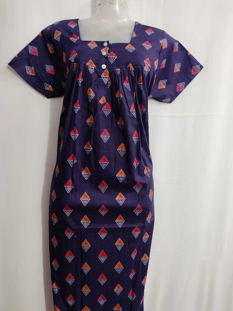 Comfortable Cambric Cotton Nighty With Buttons -55 Inches Long
