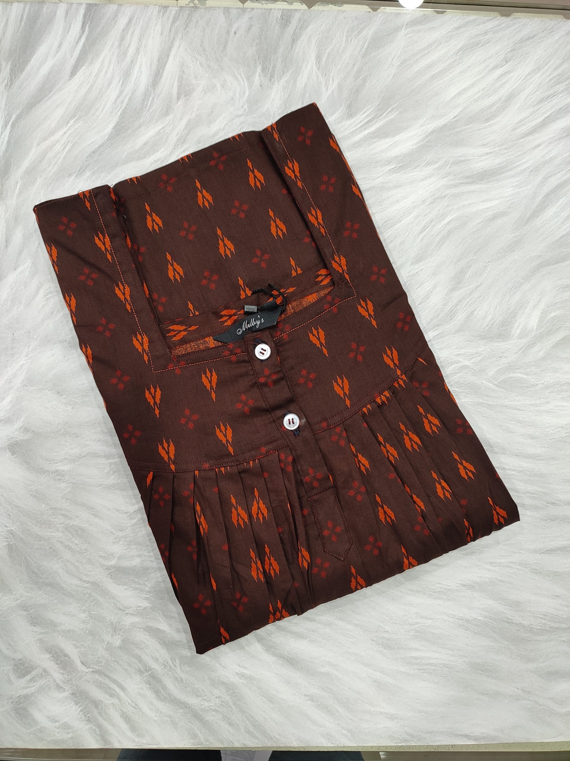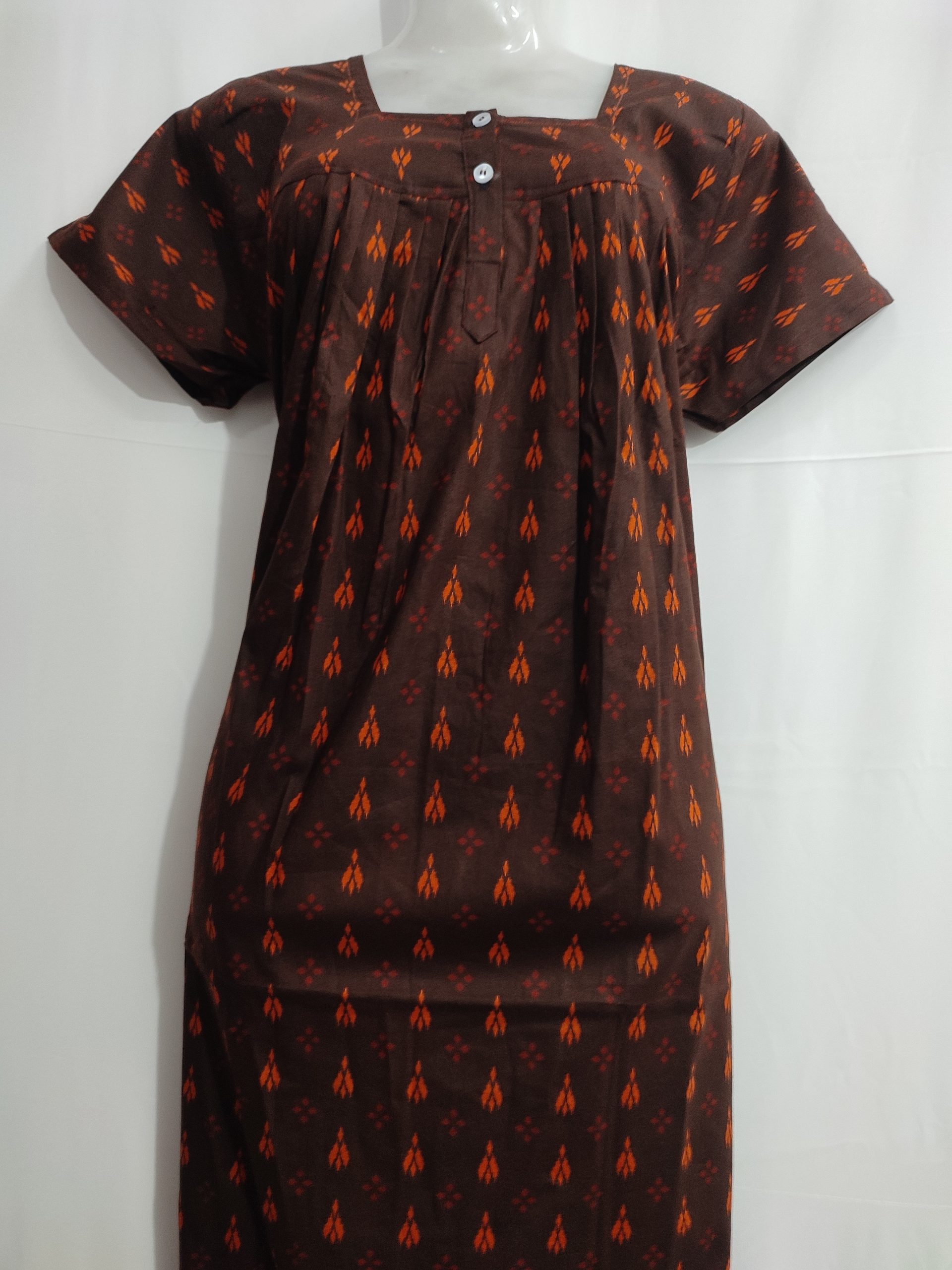 Front Open Cotton Nighty With Buttons, 55 Inches Long – Brown