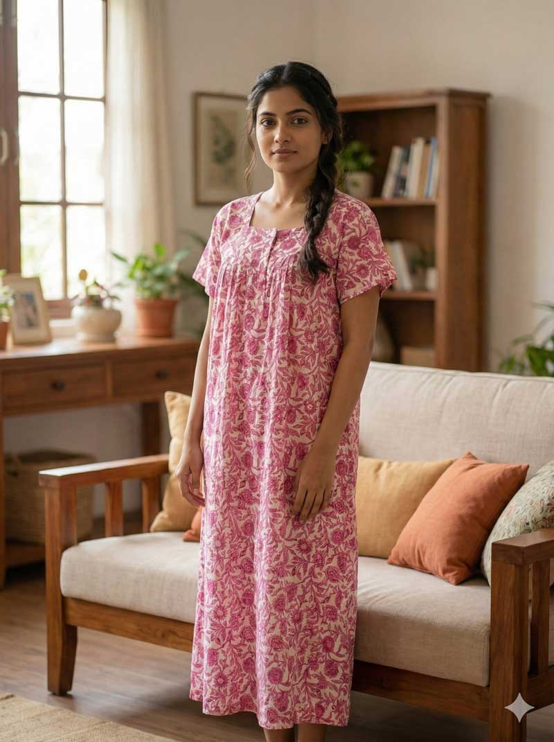 Pure Cotton Pleated Nighty